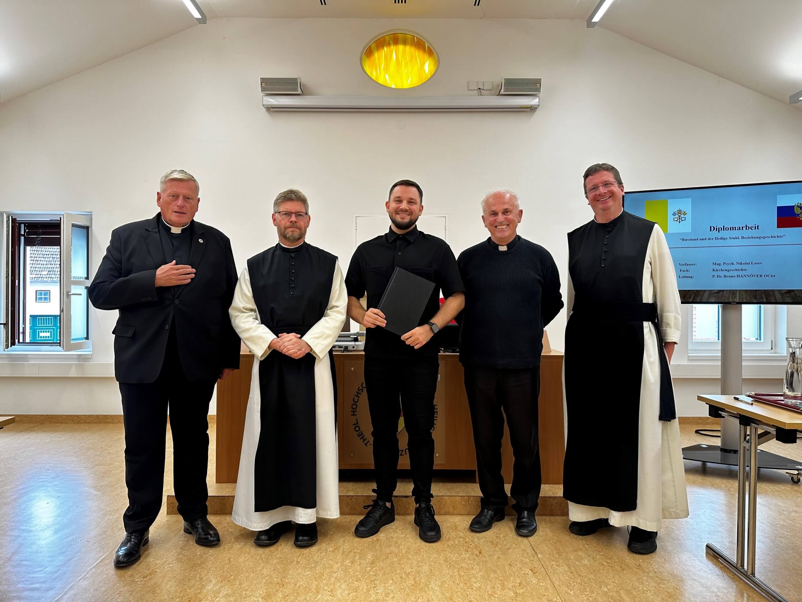 Am 03. Oktoberschließt Mag. psych. Mag. theol. Nikolai Losev sein Studium der katholischen Fachtheologie mit der Defensio ab. Der Titel seiner im Fach Kirchengeschichte verfassten Diplomarbeit lautet: „Russland und der Heilige Stuhl. Eine Beziehungsgeschichte“. Herzlichen Glückwunsch.