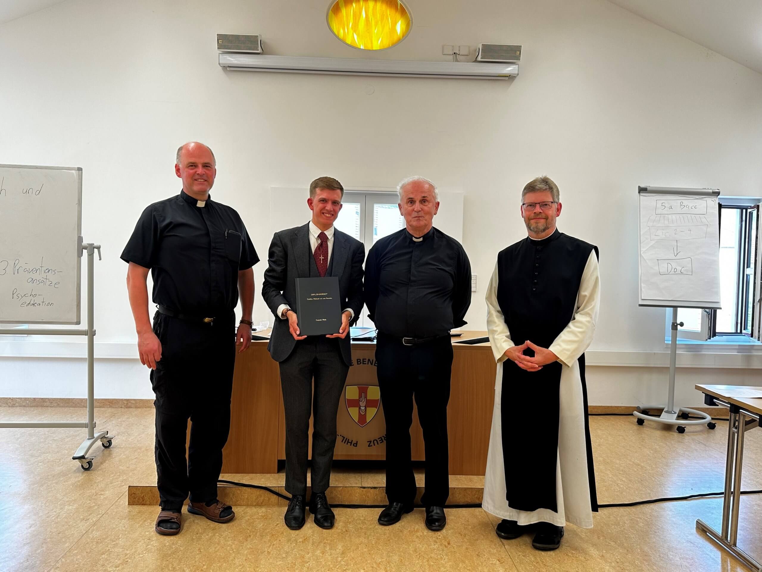 Am 19. Juni schließt Pater Mag. Christoph Schöller das Fachtheologium ab. Titel seiner im Fach Moraltheologie verfassten Diplomarbeit ist:  „Gender und Dekonstruktion – Die Dekonstruktionstheorie Derridas im Vergleich mit den Prinzipien der kirchlichen Moraltheologie in der Genderdebatte". Herzlichen Glückwunsch.